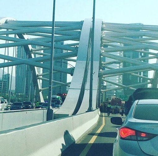 서울 양화대교 아치 위에서 40대 남성이 고공농성을 벌이고 있어, 극심한 교통정체를 빚고 있는 것으로 전해졌다.