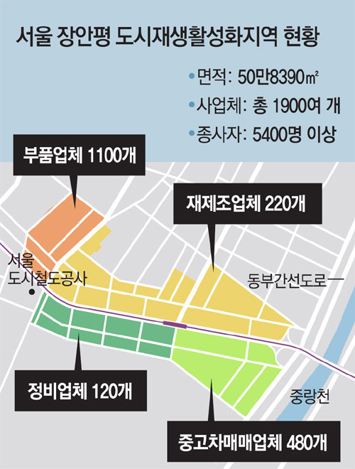 이 밖에 ‘자동차는 장안평’이라는 옛 명성을 되찾기 위해 천호대로에 자동차 상징거리를 조성하고 자동차 축제도 연다. 진희선 서울시 도시재생본부장은 “1900여 개 업체, 5400여 명이 근무하는 장안평 중고차 시장이 자동차 ‘애프터마켓’의 중심지로 거듭날 수 있도록 하겠다”고 말했다.