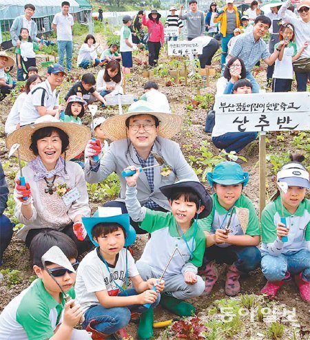 부산시는 15일 기장군 철마면에서 ‘부산 꿈틀 어린이 텃밭학교’ 입학식을 열었다.