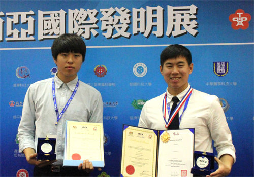 금오공대 창업 동아리 룩라이크의 최호재 정동근 씨(왼쪽부터)가 최근 말레이시아에서 열린 국제 발명 혁신 기술 전시회에서 은상 등 3개 부문에서 입상했다. 금오공대 제공