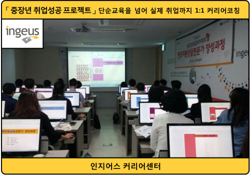 인지어스커리어센터에서는 과정을 수강하는 중장년들의 취업지원을 위해 직무기술능력과 구직능력을 향상시킬 수 있도록 커리어 코칭 및 취업지원도 함께 진행한다. 특히 실제 취업까지 연계될 수 있도록 단순 무료 교육을 넘어 교육 수료 후에도 지속적인 사후관리를 실시하여 중장년 구직자들이 취업을 성공적으로 할 수 있도록 지원한다.