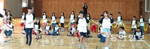 9일 인천 한누리학교 대강당에서 1박 2일간의 2016 글로벌 꿈 키움 캠프를 마친 학생들이 즐거운 표정으로 율동을 선보이고 있다. 김영국 채널A 스마트리포터 press82@donga.com