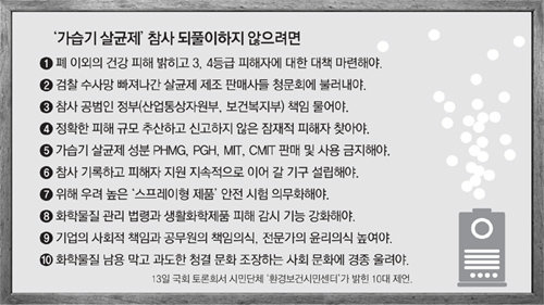 이처럼 환경부의 안일한 대처가 드러나자 시민단체를 중심으로 문제를 지적하는 목소리가 터져 나왔다. 화학물질감시네트워크 현제순 사무국장은 “가습기 살균제 참사가 반복되지 않기 위해서는 스프레이형 제품에 대한 규제를 강화하는 한편 문제가 사전에 발견됐을 때 예방적으로 대처하는 자세가 필요하다”고 지적했다.