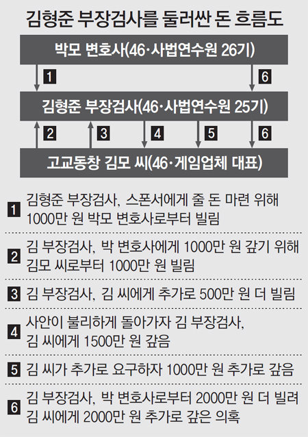 검찰이 ‘스폰서·수사무마 청탁’ 의혹을 받고 있는 김형준 부장검사(46·사법연수원 25기)가 고교 동창 김모 씨(46)에게 스폰서 비용 상환 목적 등으로 건넨 4500만 원의 출처를 전면 조사 중인 것으로 8일 확인됐다.
