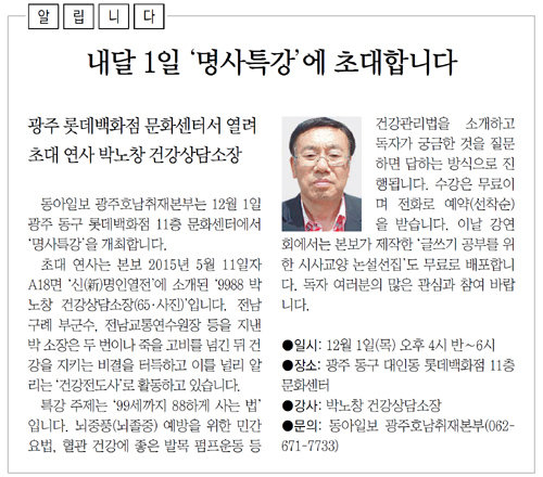 광주 롯데백화점 문화센터서 열려… 초대 연사 박노창 건강상담소장