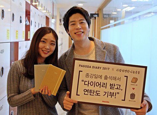 서울, 부산 등 전국 8개 지역의 파고다어학원에서는 11월 종강일에 출석하는 수강생들을 대상으로 2017년 다이어리를 증정했으며 수강생들이 다이어리를 수령하면 연탄 1장이 자동으로 기부됐다. 약 7100여 명의 수강생들이 참여해 연탄 7100장을 사랑의 연탄나눔운동에 전달하게 된 것.