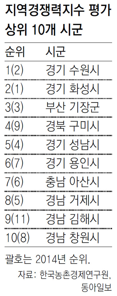 21일 동아일보와 한국농촌경제연구원이 발표한 지역경쟁력지수 평가의 결과는 이렇게 요약된다.