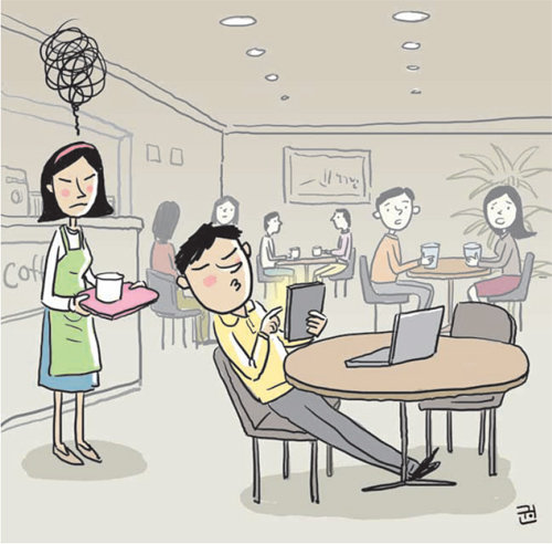 지난해 12월 25일 서울 성동구의 한 카페. 주인 박모 씨(27)는 황당한 일을 겪었다. 카페 손님 A 씨(26) 탓이다. A 씨는 사흘 내내 같은 시간에 카페를 찾았다. 하지만 박 씨에게 A 씨는 단골이 아닌 ‘진상’ 손님이다. 그는 올 때마다 단 한 잔의 음료도 주문하지 않았다. 그리고 3시간 넘게 테이블에 앉았다가 자리를 떴다.