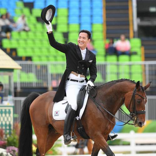 한국 승마대표팀 김동선 선수가 브라질 리우데자네이루 올림픽 승마 경기장에서 열린 개인 마장마술 그랑프리 1차전에서 연기를 마친뒤 인사를 하고 있다. 사진공동취재단/동아일보 DB