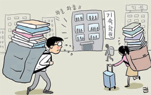 경기 용인종로학원 윈터스쿨에는 경북의 한 고교 교장이 상위권 학생 3명을 데리고 왔다. 교장은 “이 학생들로 대입 성과를 제대로 내고 싶어 재단에서 학원비를 내줬다”고 말했다. 통학형으로 다니는 지방 출신 학생들은 학원 앞에 단기 하숙집을 얻었다.