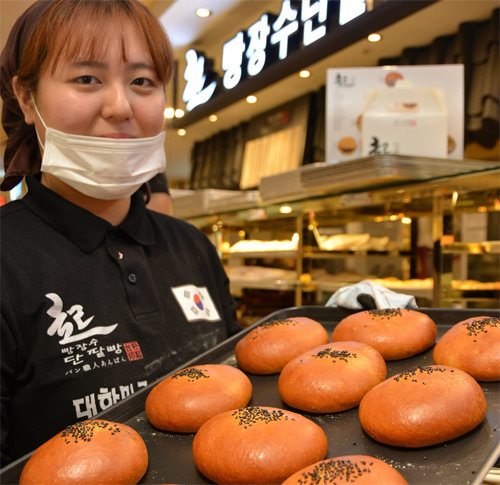 12일 대구백화점 프라자점 지하 1층 식품관에서 직원이 단팥빵을 보여주고 있다. 가격은 2000원이다.