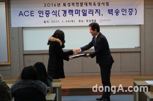 한편, 강용규 산학취업처장은 “우리 대학은 ACE인증프로그램을 통해 학생들에게 입학부터 졸업까지 대학생활 및 진로에 대한 로드맵을 제시하고 있다”며 “학생들은 자신의 경력을 갖게 되고 대학측은 경쟁력이 향상돼 대학 전체 취업률 향상을 시킬 수 있기를 기대한다”고 했다.