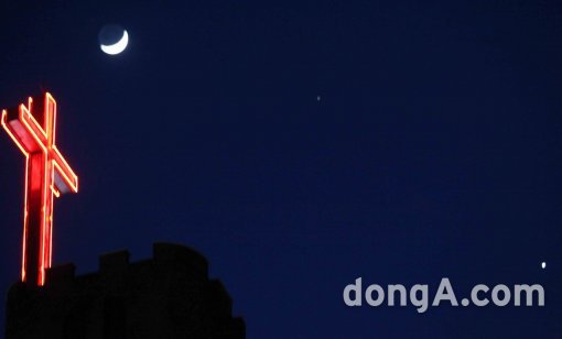 [동아포토]초승달-화성-금성 나란히 나란히 '우주쇼'