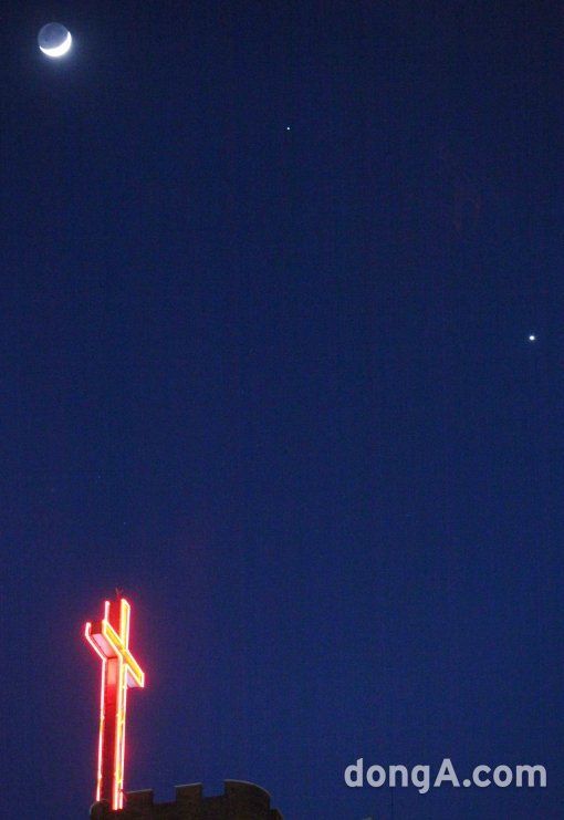 [동아포토]밤하늘 수놓는 우주쇼.. 초승달-화성-금성