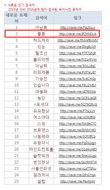 특히 2015년에 대비해 가장 검색량이 급증한 단어로는 2위에 링크됐다.