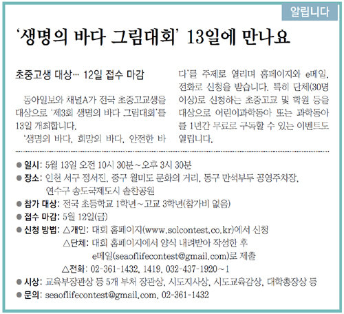 [인천판/알립니다]‘생명의 바다 그림대회’ 13일에 만나요