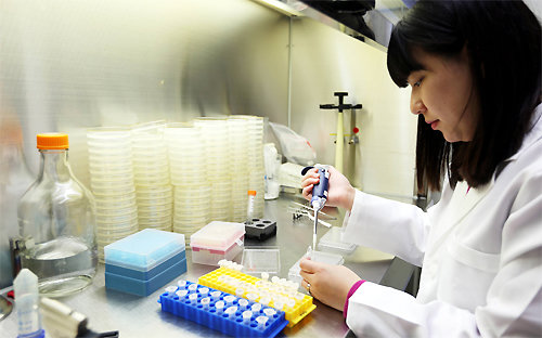 11일 경북도 산림자원개발원 멸균실험실에서 연구원이 임산물에서 추출한 물질의 효능을 검사하고 있다. 경북도 산림자원개발원 제공