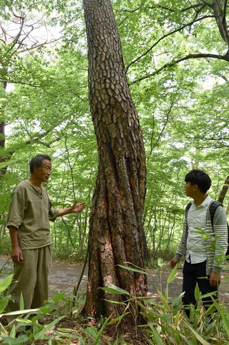 ‘울산생명의 숲’ 이사장인 정우규 박사팀은 울산의 노거수(老巨樹)를 조사하던 중 울주군 가지산 석남사 입구 숲에서 11그루의 뱀송(줄기가 스프링 모양으로 휘어져 자라는 소나무 품종) 줄기가 합쳐져 자라는 희귀 소나무를 발견했다고 4일 밝혔다.