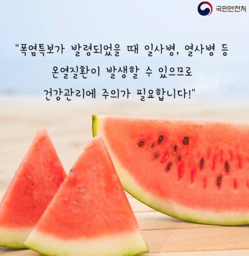 국민안전처는 이날 공식 소셜미디어에 “폭염 특보는 언제 내려지는지 알고 계신가요”라는 제목의 카드 뉴스를 게재했다.