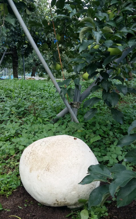 최근 해마다 댕구알버섯을 발견한 농장주는 올해도 사과나무 사이를 주의깊게 살펴보다 2개를 찾아냈다. 이 사과농장에선 2014년에 2개, 2015년에 2개, 지난해 8개, 올해 2개 등 4년 만에 16개의 댕구알버섯이 채집됐다.