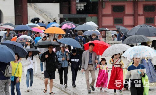 추석연휴 우산 쓰고 고궁 나들이… 2일 오후 갤듯