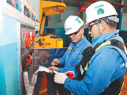 13일 포스코 포항제철소 직원들이 설비 동파를 막기 위한 점검을 하고 있다.