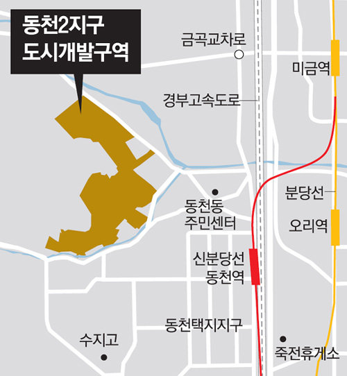 동천2지구 사업 허가를 내준 용인시는 서류상 조합 구성 요건을 충족하면 일일이 조합원을 확인하지는 않는다고 설명했다. 서류만 갖추면 위장 조합원을 가려낼 수 없는 구조인 셈이다. 일각에서는 사업 허가를 내준 과정이 석연치 않다고도 주장한다. 통상 도시개발사업 터는 정형성을 지닌다. 동천2지구는 정상적이라면 직삼각형 형태가 돼야 하는데 주민 반대로 일부 터가 제외되면서 정형성이 흐트러져 모양이 어색하다는 것이다. 용인시 관계자는 “동천2지구는 신청과 심의 과정 등에서 외형상 문제가 없었다”고 말했다.