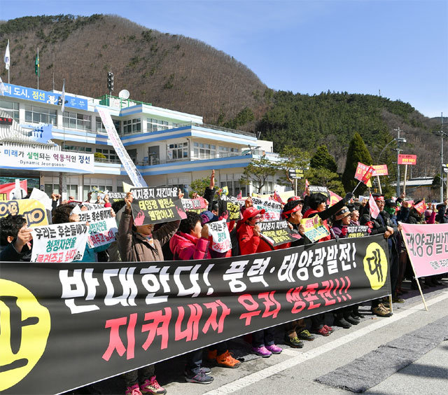 이들은 또 “지역에 기여도가 전혀 없는 데다 경제효과가 없고, 청정자연을 훼손하면서 개인의 잇속만 챙기는 태양광과 풍력발전 사업에 결사반대한다”며 “거주민들의 생존권적 기본권을 침해하면서 사업자들의 이익만 채워주는 정부의 신에너지 정책은 개정돼야 한다”고 주장했다.