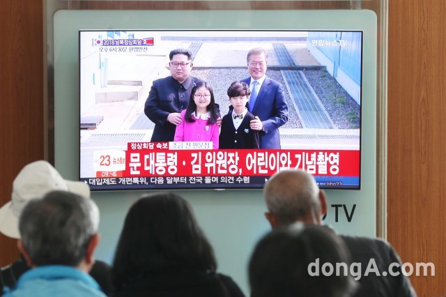 [동아포토]남북 정상회담 생중계.. 감격적인 순간
