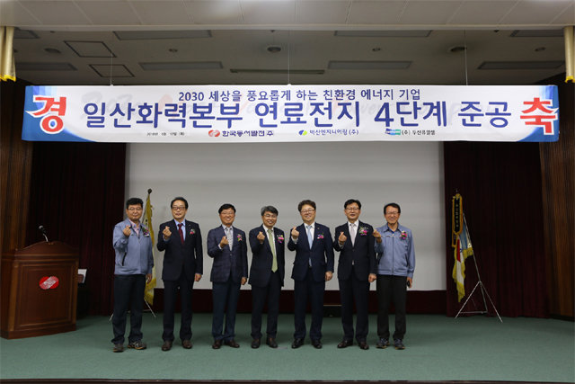 한국동서발전㈜(사장 박일준)는 17일 일산화력본부 대강당에서 연료전지 4단계(5.28MW) 준공식을 가졌다고 밝혔다. 이날 준공식에는 한국동서발전 박일준 사장을 비롯해 산업통상자원부 김현철 신재생에너지정책단장, 벽산엔지니어링 및 두산 퓨얼셀 등 사업 관계자 60여 명이 참석했다.