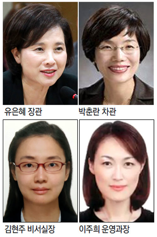 유 장관이 취임 직후 장관비서실장에 임명한 김현주 전 국제교육협력담당관은 교육부 역대 두 번째 여성 장관비서실장이다. 이에 앞서 김상곤 전 장관은 교육부의 인사 업무를 총괄하는 운영지원과장에 현 이주희 과장을 임명했다. 이 과장 역시 역대 두 번째 여성 운영지원과장이다. 역대 첫 여성 장관비서실장과 운영지원과장을 지낸 이는 이난영 현 사회정책협력관으로 이명박 정부 당시 이주호 전 장관이 ‘능력 중심 인재 발굴’을 내세워 전격 발탁됐다.