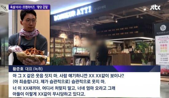 유기농 빵브랜드 보네르아띠의 황준호 대표가 매장 직원에게 심한 욕설을 퍼붓는 등 이른바 ‘갑질’을 했다는 폭로가 나왔다고 11일 JTBC가 보도했다.