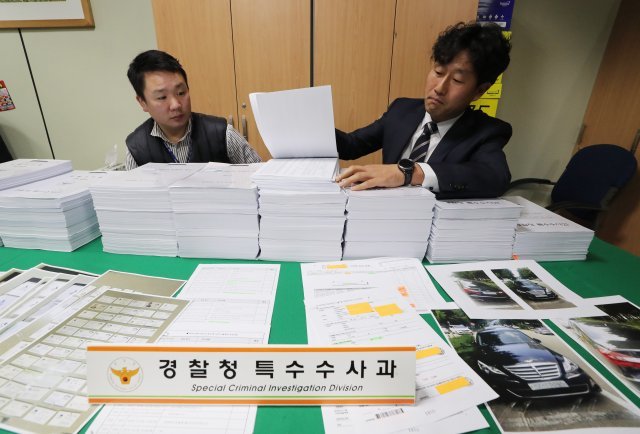 4일 오전 서울 서대문구 경찰청에서 특수수사과 관계자들이 국토교통부 공무원 등 건설비리 수사관련 수사자료를 살펴보고 있다.2018.12.4/뉴스1