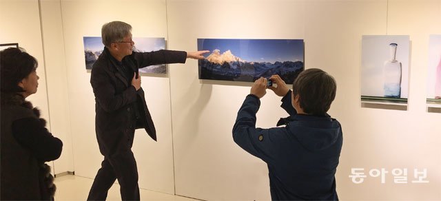 10일 부산 중구 중앙동 갤러리 별에서 열린 ‘時·공간·Trace’ 사진전에서 작가들이 작품을 설명하고 있다. 권시숙 이필두 씨 등 중견 사진·미술작가 13명이 참여해 다양한 장르의 사진을 선보인다. 전시는 8일 개막해 29일까지 열린다.