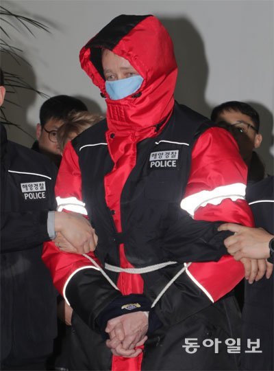 5988t급 화물선 시그랜드호의 러시아인 선장 세르코프 안드레 씨(42)가 3일 영장실질심사를 받기 위해 부산지법에 출석하고 있다. 안드레 씨는 음주 항해로 부산 광안대교를 들이받고 도주한 혐의 등으로 이날 구속 수감됐다. 안드레 씨는 영장심사 당시 “(사고 이후) 혈액 순환에 좋다고 해서 코냑 한 잔을 마셨다”고 주장했다.