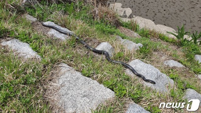 경북 안동 낙동강변 공원에서 멸종위기종 2급인 먹구렁이가 발견됐다.