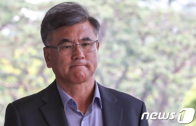공정위 출신 퇴직자의 대기업 재취업을 알선한 혐의를 받고 있는 김학현 전 공정위 부위원장이 24일 서울 서초동 중앙지검으로 출석하고 있다. 2018.7.24/뉴스1 © News1