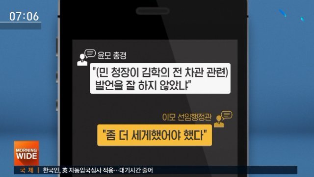 메신저에는 또 두 사람이 민 청장의 국회 발언을 두고 의견을 나누는 내용도 있었다.