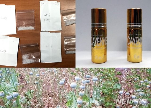 경찰은 수사 과정에서 물뽕 60㎖와 필로폰 8.4g을 압수조치했다. 도내 곳곳에서 양귀비 1175주를 불법 재배한 혐의를 받는 6명에 대해서는 내사를 진행 중이다.