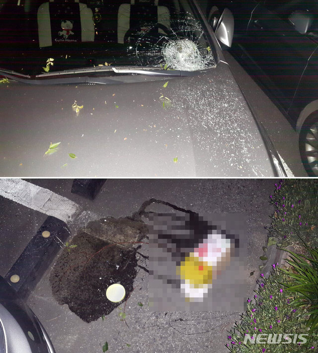 경찰은 쏘나타 위로 추락한 꿀병을 수거해 감식을 의뢰하는 등 정확한 사건 경위를 조사하고 있다.