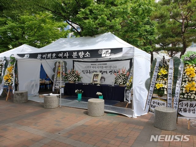 14일 민주당 진주시위원회에 따르면 지난 11일 오후 8시부터 14일 오전 6시까지 진주시청 앞 광장에서 고 이희호 여사 합동 분향소를 설치해 운영했다.