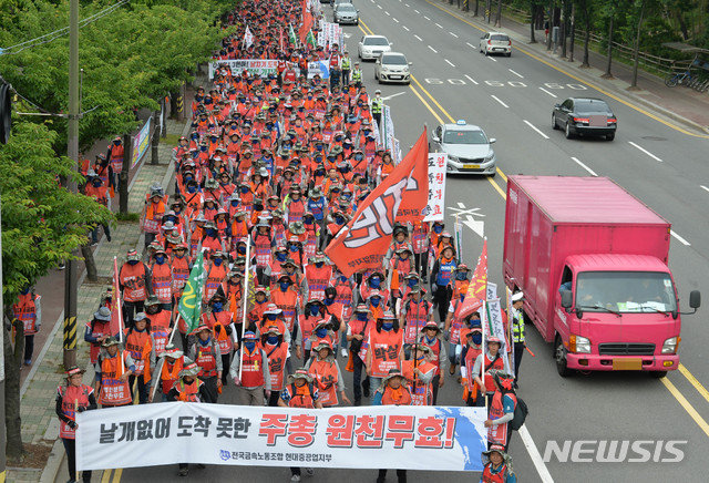 앞서 지난 14일에는 회사에서 울산시청까지 18km 구간을 6시간 가량 행진하며 물적분할 무효를 주장했다.