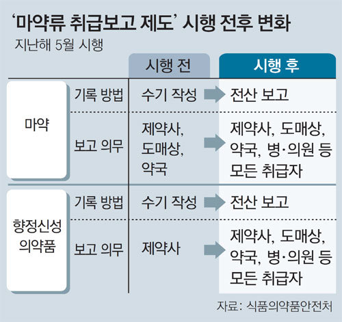 이처럼 의료용 마약류 관리감독이 촘촘해진 건 비교적 최근 일이다. 지난해 5월 이전까지만 해도 제약사와 유통업자, 약국, 의료기관 등은 의료용 마약류를 제조하거나 판매, 처방한 내역을 수기로 작성했다. 누가 누구에게 어떤 마약류를 얼마나 처방했는지 확인하려면 직접 의료기관을 방문해야만 했다.