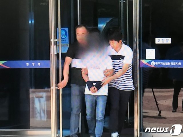 8일 오전 광주지법 목포지원에서 베트남 국적 아내를 무차별 폭행한 남편 A씨(36)가 영장실질심사를 마친 후 법원에서 나오고 있다.(독자제공 동영상 캡처) 2019.7.8 /뉴스1 © News1