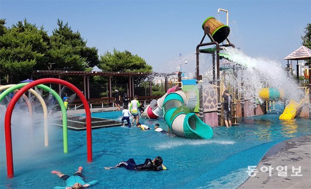 장맛비 예보가 있지만 무더운 날씨가 계속 이어지자 10일 인천 동구 송현공원 물놀이터 ‘또랑’에서 어린이들이 더위를 식히고 있다. 또랑은 18일까지 매일(월요일 휴장) 오전 11시∼오후 6시 무료로 운영된다.