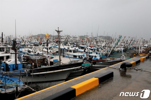 제5호 태풍 ‘다나스’(DANAS)가 한반도로 접근하고 있는 가운데 19일 오후 전남 여수시 국동항에 태풍을 피해 정박해 있는 어선들이 가득하다. 여수와 광양, 고흥 등 전남 동부권 항포구에는 이날 현재 8000여척의 선박들이 피항해 있다.2019.7.19/뉴스1 © News1