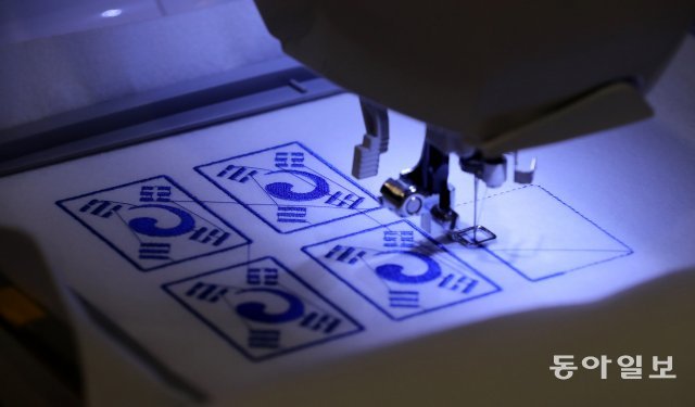 한 땀 한 땀 정교하게…천 위에 수 놓인 태극기