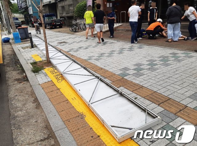태풍에 떨어진 간판(인천소방본부제공)2019.9.7/뉴스1 © News1
