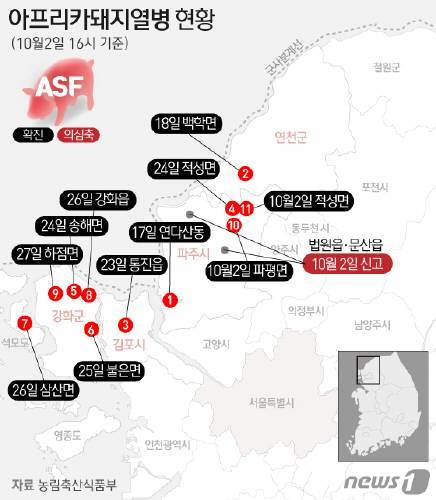 이날 하루에만 경기 파주시에서 의심신고가 2건 접수된데 이어 김포에서도 연달아 접수되면서 경기 북부지역을 중심으로 확산하는 것 아니냐는 우려가 나온다.