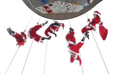 산타복장을 한채 클라이밍 중인 쌩곰등반클럽 회원들.